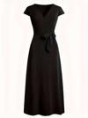 Kadın Kısa Kollu V Yakalı Belden Kuşaklı Maksi Boy Viskon Elbise