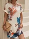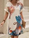 Kadın Kısa Kollu V Yakalı Desenli Mini Atlas Elbise