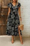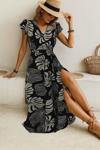 Kadın Kısa Kollu V Yakalı Desenli Yandan Yırtmaçlı Süprem Elbise