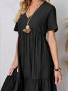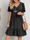 Kadın Kısa Kollu V Yakalı Fırfırlı Bürümcük Elbise