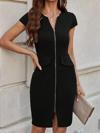 Kadın Kısa Kollu V Yakalı önden Fermuarlı Kısa Ithal Krep Elbise