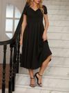 Kadın Kısa Kollu V Yakalı önden Pileli Midi Janjan Krep Elbise