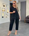 Kadın Kısa Kollu V Yakalı Pul Payetli Viskon Iki Iplik Bluz Ve Pantolon Ikili Takım