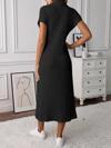 Kadın Kısa Kollu Yakalı Yandan Yırtmaçlı Kalın Fitilli Kaşkorse Elbise