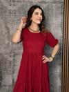 Kadın Kısa Kollu Yakası Açık Katlı Bürümcük Balon Elbise