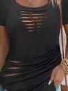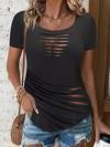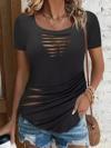 Kadın Kısa Kollu Yakası Açık Lazer Kesik Detaylı Viskon Bluz