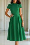 Kadın Kısa Kollu Yarı Balıkçı Yaka Pileli Janjan Krep Midi Elbise