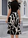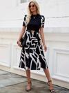 Kadın Kısa Kollu Yarı Balıkçı Yaka üst Viskon Alt Desenli Dokuma Midi Elbise