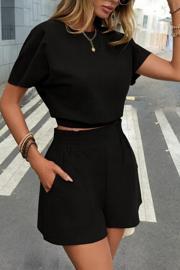 Kadın Kısa Kollu Yuvarlak Yakalı Ithal Keten Bluz Ve Short Ikili Takım