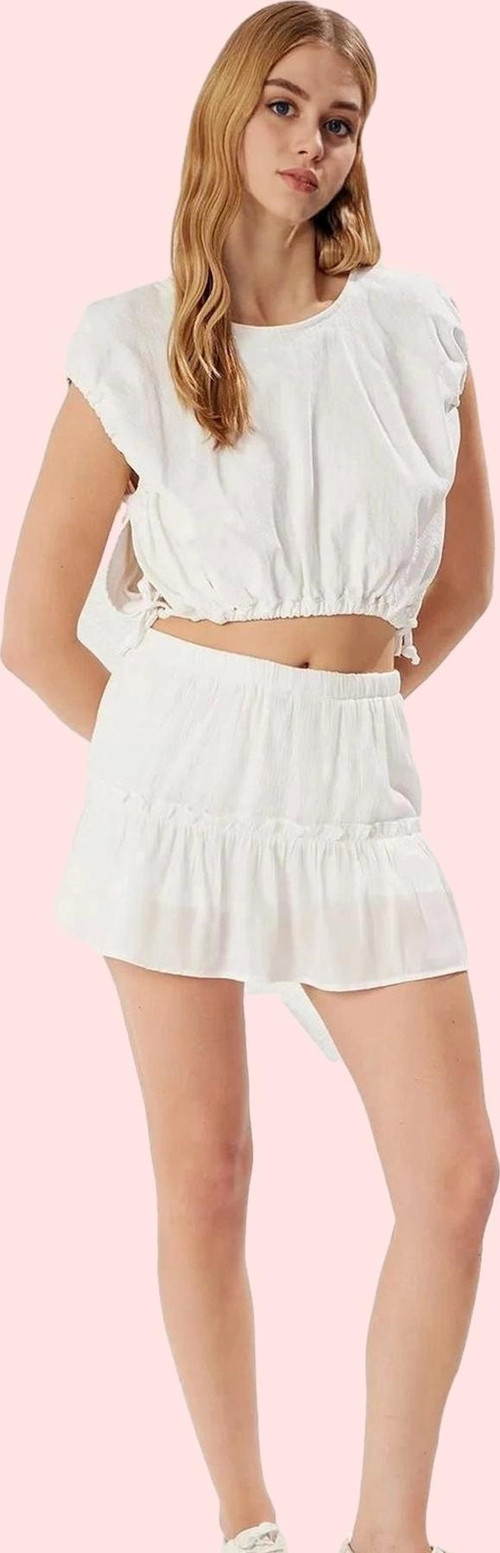 Yaz aylarının vazgeçilmezi olan bu beyaz şort etek, şıklığı ve rahatlığı bir araya getiren benzersiz bir tasarıma sahip. Normal bel yapısı ve geniş paçası ile vücudunuzu saran değil, özgürlüğünüzü kutlayan bir stil sunuyor. Maroken dokuma kumaş, hem hafifliği hem de nefes alabilir yapısıyla gün boyu konfor sağlar. Kısa boyu ve şort etek görünümüyle hem günlük kombinlerinizde hem de plaj şıklığınızda rahatlıkla kullanabilirsiniz. Beyaz rengi, her türlü üst giyimle uyum sağlayarak tarzınızı tamamlamanıza olanak tanır. Bu şort eteğin bakımı oldukça kolaydır; yıkama talimatlarına uymanız yeterli. Türkiye'de üretilen bu kaliteli ürün, yaz aylarında tarzınızın ve konforunuzun en iyi arkadaşı olacak.