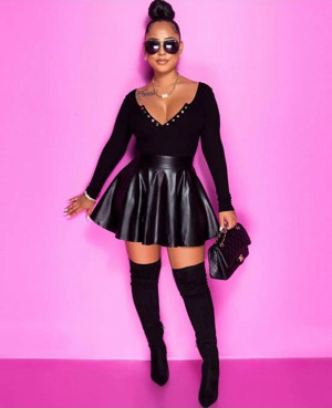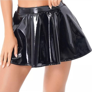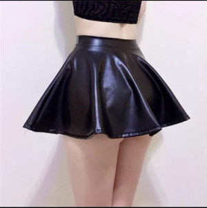 Deri Kloş Mini Etek