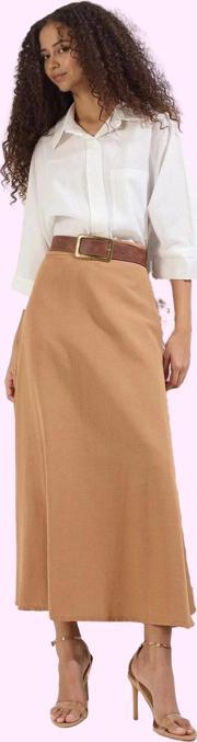 Keten görünümlü dokuma kumaş, eteğe hem şık hem de rahat bir his katarken, yumuşak dokusuyla gün boyu konfor sağlar. Kloş kesim, vücut hatlarınızı dengeleyerek zarif bir silüet oluşturmanıza yardımcı olur. Astarlı yapısı ise gün boyu sürtünme ve rahatsızlık hissi yaşamadan rahatça hareket etmenizi sağlar. Bu etek, %57 pamuk ve %43 viskoz karışımı ile üretilmiş olup, kolay yıkanabilir ve bakımı kolaydır. Makinede yıkama talimatlarını takip ederek uzun yıllar boyunca ilk günkü gibi kullanabilirsiniz.
