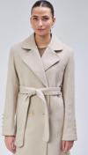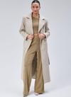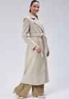 Kürk Yaka Kuşaklı Kaşe Kaban Bej - Image 1