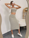 Kadın Kolsuz Askılı Crop Yırtmaçlı Midi Etek Fitilli Kaşkorse Takım