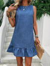 Kadın Kolsuz Bisiklet Yaka Fırfırlı Sofya Elbise