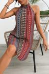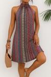 Kadın Kolsuz Boyundan Askılı Desenli Midi Süprem Elbise
