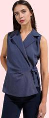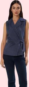 Yaz aylarının vazgeçilmezi olan bu şık kadın kolsuz gömlek, günlük yaşamınızda rahatlığı ve şıklığı bir araya getiriyor. Lilyum dokuma kumaştan üretilen gömlek, nefes alabilen yapısıyla gün boyu konfor sunuyor. V yaka detayı ve kruvaze tasarımıyla modern ve feminen bir görünüm elde edebilirsiniz. Çizgili deseni ise gömleğe hareket katıyor. Rahat kalıbı sayesinde her vücut tipine uyum sağlayan gömlek, farklı kombinlerle tarzınızı yansıtabilirsiniz. Bir kot pantolon ve spor ayakkabı ile günlük bir şıklık yakalayabilir, ya da etek ve topuklularla daha şık bir görünüm yaratabilirsiniz. Bu kolsuz gömlek, farklı renklerdeki aksesuarlarınızla birlikte mükemmel bir kombin oluşturmanıza yardımcı olacak. Makinede yıkanabilir özelliği ile de bakımı oldukça kolay.