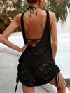 Kadın Kolsuz Derin Oval V Detaylı Iki Yanı Büzgülü Triko Pareo