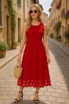 Kadın Kolsuz Etek Ucu Lazer Kesim çiçek Desenli Midi Boy Ithal Krep Elbise
