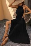 Kadın Kolsuz Halter Yaka Beli Lastiklidesenli Mikro Elbise