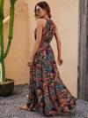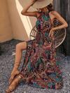 Kadın Kolsuz Halter Yaka Beli Lastikliotantik Desenli Mikro Kumaş Elbise
