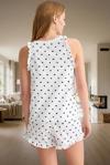 Bu şirin ve rahat pijama takımıyla kendinizi evinizin konforuna bırakın! Yumuşacık %100 pamuklu kumaşıyla gün boyu süren konforu deneyimleyin. Kalpli desenleriyle şık ve modern bir görünüm sunan bu takım, özel tasarımıyla rahatlığın ön planda olduğu bir deneyim vaat ediyor. Büzgülü fırfırlı kolları ve kısa paçaları ile sıcak yaz günlerinde serin ve rahat hissetmenizi sağlar. Normal bel yapısı ile vücuda mükemmel uyum sağlar. 2 parçadan oluşan bu takım, hem üst hem de alt giyimde mükemmel uyum sunar. Evde dinlenirken, kitap okurken ya da film izlerken size eşlik edecek en ideal seçenek. Makinede kolayca yıkanabilir özelliği sayesinde pratik bir kullanım sunar. Regular kalıbıyla çoğu vücut tipine uyum sağlayacak bu pijama takımı, yaz aylarının vazgeçilmez parçası olacak. Evinizin konforunda tarzdan ödün vermeyin!