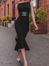 Kadın Kolsuz Kayık Yaka Beli Deri Detaylı Krep Elbise