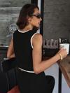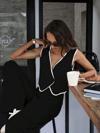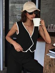 Martcini Kadın Kolsuz V Yakalı Düğmeli Ithal Krep Yelek Ve Pantolon Ikili Takım