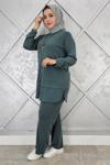 Parla Uzun Ceket Pantolon İkili Tesettür Takım Saks - Image 1