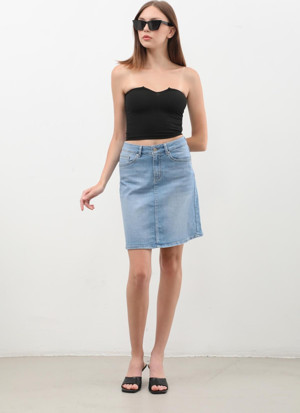 Kadın Düz Dar Jean Etek Açık Mavi