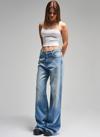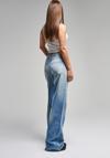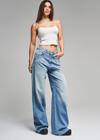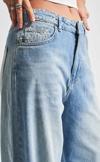 Its Basic Kadın Kot Rengi 2S5-75 Midrise Wide Leg Kemeri Çiçek Nakışlı %100 Koton Tasarım Denim Jean
