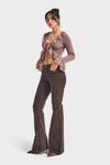 Its Basic Kadın Koyu Kahverengi 26w5-136 Low Waist Flare Fit İnce Fitilli Velvet Kadife Kumaş Pantolon