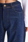 Its Basic Kadın Koyu Mavi Renk T-7w5-50 Straight Fit Yüksek Bel Viskon Koton Kumaş Parlak Taşlı Tasarım Denim Jean