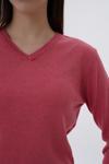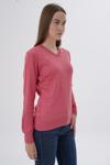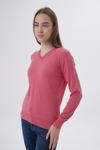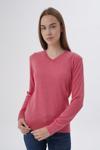 Kadın Koyu Pembe %100 Organik Pamuk V Yaka Triko Kazak Bluz Trıst-6102