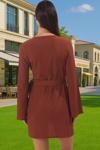 Krep dokuma kumaş, hafif ve nefes alabilir yapısıyla yaz sıcağında bile rahatlık sunar. Uzun kollu tasarımı güneşten korunmanıza yardımcı olurken, mini boyu ise bacaklarınızı göstermenize olanak tanır. V yaka detayı ise boynunuzu daha uzun ve ince gösterir. Bağlamalı detay ise elbiseye şık bir dokunuş katar ve belinizi belirginleştirerek vücut hatlarınızı ön plana çıkarır. Esnek yapısı sayesinde hareket özgürlüğü sağlar ve gün boyu rahat bir kullanım sunar.