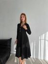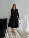 Kadın Krep Kumaş Düğme Detaylı V Yaka Uzun Kollu Midi Boy Elbise