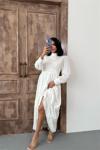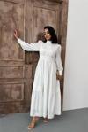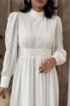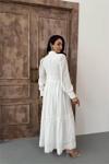 Ürün 36-42 bedene kadar uyumludur, Hakim yaka, uzun kol, eteği kloş, dantel detaylı, astarlı, rahat ve terletmez kumaş.