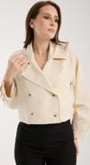 · Mankenin üzerindeki ürün s/36 · Model bilgisi: Modelin ölçüleri: Boy: 176 cm göğüs: 86 cm bel: 63 Kalça: 96cm ; · regular kalıp ; · Materyal bileşeni: 86% polyester,14% elastan ; · Kumaş tipi: Dokuma ; · Stüdyo çekimlerinde renkler ışık farklılığından dolayı değişiklik gösterebilir. ; · Crop trençkot, şık ve modern bir görünüm için ideal bir seçenektir. Üst kısmı kısa kesimli olan bu trençkot,rahat kombinleme imkanıyla kolaylık sağlar. Yüksek kaliteli kumaşıyla uzun süre dayanıklılığını korurken, şıklığınızdan ödün vermezsiniz. Farklı renk seçenekleriyle her tarza uyum sağlayan crop trençkot, gardırobunuzun vazgeçilmez parçalarından biri olacak. ;
