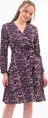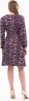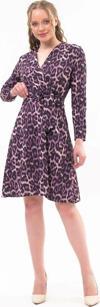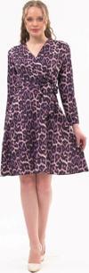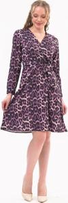 Leopar deseni ve kruvaze yakası ile dikkat çeken bu elbise, özel davetlerden günlük şıklığa kadar geniş bir kullanım alanı sunar. Topuklu ayakkabılarla zarif bir görünüm elde edebilir, deri ceket veya şal ile kombini tamamlayabilirsiniz.
