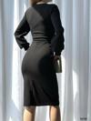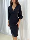 Kadın Kruvaze Yaka Balon Kol Midi Boy Elbise
