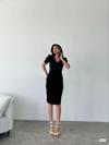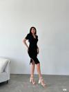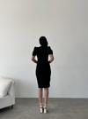 Kadın Kruvaze Yaka Yandan Yırtmaç Detaylı Scuba Krep Kumaş Midi Boy Elbise