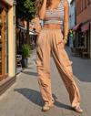 Oppland Kadın Butik Pantolon Etek Beli Ip Kemerli Pilili Rahat Kesim Sandy Likralı Kumaş Kiremit Standart - Image 1