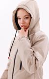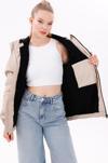 Lela Oversize Geniş Yaka Çıtçıt Düğmeli Astarlı Peluş Bayan Mont 6839623 TAŞ - Image 1