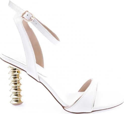 DGN Kadın Küt Burun Asimetrik Bantlı Bilekten Bağlı Topuklu Ayakkabı Beyaz 73512821