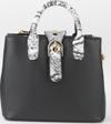 Vivaq Kadın Kutu Siyah Suni Deri Yılan Derisi Desenli Askılı Çıtçıt Fermuar Kapama El Ve Omuz Çantası