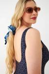 Giyim Kadın Lacivert Geometrik Desenli Büyük Beden Tek Parça Mayo - Image 1