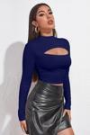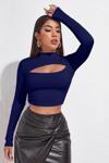 Kadın Lacivert Göğüs Dekolteli Uzun Kollu Cut Out Crop Top Bluz