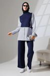 Pantolonun cepli ve beli lastikli tasarımı, maksimum rahatlık sağlarken, bisiklet yaka ve düğmeli üst kısım, şıklığınızı ön plana çıkarır.