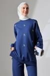 Moda Kadın Lacivert Mevsimlik Penye Alt Üst Spor Ve Rahat Ikili Tunik Pantolon Şık Tesettür Takım