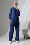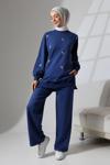 Kadın Lacivert Mevsimlik Penye Alt Üst Spor Ve Rahat Ikili Tunik Pantolon Şık Tesettür Takım
